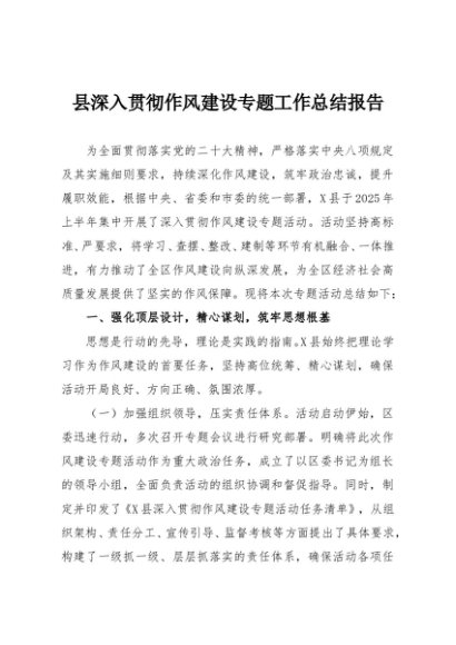/ 【七哥公文】2025年:县深入贯彻作风建设专题工作总结报告+更多免费公文+VX:QiGeGongWen2024