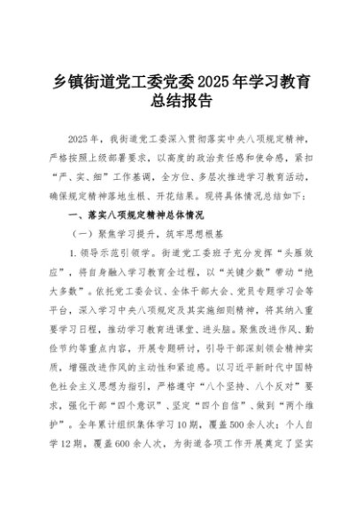 / 【七哥公文】2025年:乡镇街道党工委党委2025年学习教育总结报告+更多免费公文+VX:QiGeGongWen2024