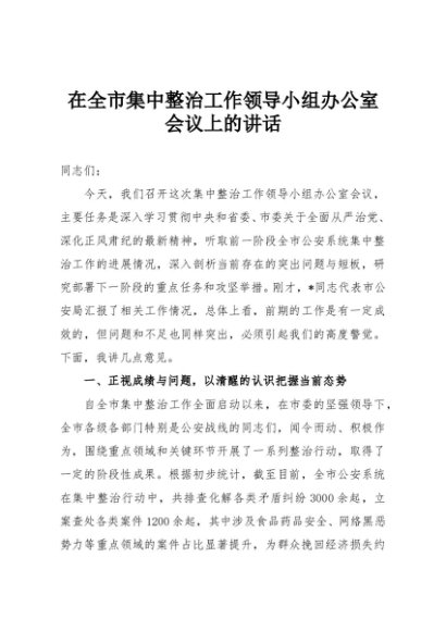 / 【七哥公文】2025年:在全市集中整治工作领导小组办公室会议上的讲话+更多免费公文+VX:QiGeGongWen2024