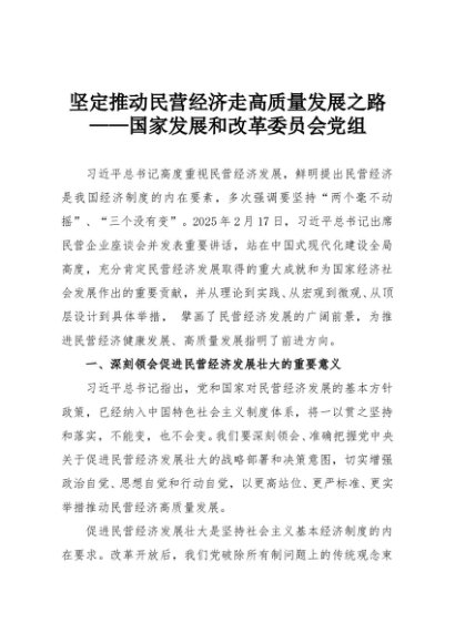 【七哥公文】2025年:坚定推动民营经济走高质量发展之路——国家发展和改革委员会党组+更多免费公文+VX:QiGeGongWen2024