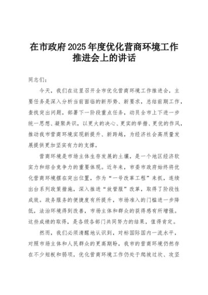 / 【七哥公文】2025年:在市政府2025年度优化营商环境工作推进会上的讲话+更多免费公文+VX:QiGeGongWen2024