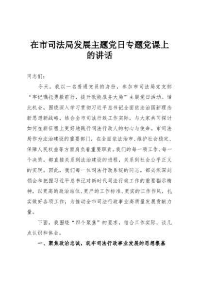 / 【七哥公文】2025年:在市司法局发展主题党日专题党课上的讲话+更多免费公文+VX:QiGeGongWen2024