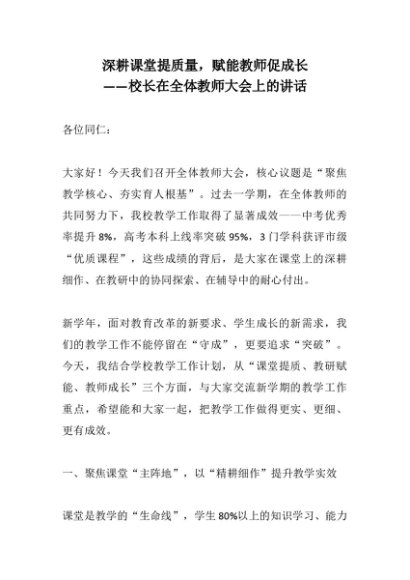 【七哥公文】2025年:深耕课堂提质量,赋能教师促成长——校长在全体教师大会上的讲话+更多免费公文+VX:QiGeGongWen2024