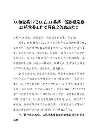 【七哥公文】2025年:XX镇党委书记XX在XX委第一巡察组巡察XX镇党委工作动员会上的表态发言+更多免费公文+VX:QiGeGongWen2024