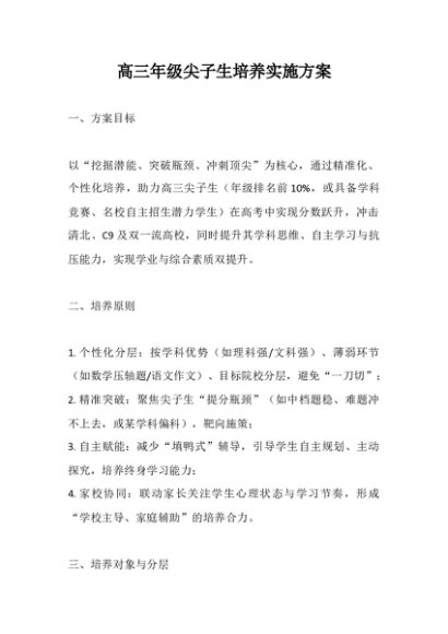 / 【七哥公文】2025年:高三年级尖子生培养实施方案+更多免费公文+VX:QiGeGongWen2024