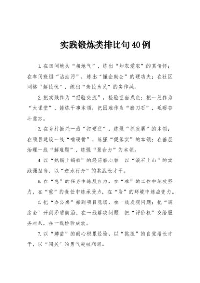 / 【七哥公文】2025年:实践锻炼类排比句40例+更多免费公文+VX:QiGeGongWen2024