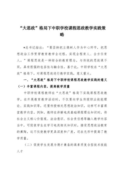 / 【七哥公文】2025年:“大思政”格局下中职学校课程思政教学实践策略+更多免费公文+VX:QiGeGongWen2024