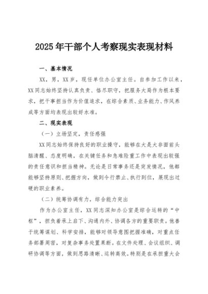 / 【七哥公文】2025年:2025年干部个人考察现实表现材料+更多免费公文+VX:QiGeGongWen2024