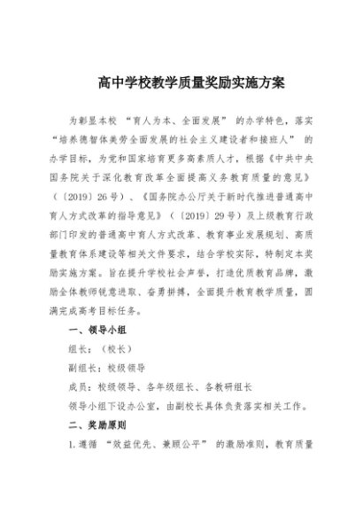 / 【七哥公文】2025年:高中学校教学质量奖励实施方案+更多免费公文+VX:QiGeGongWen2024