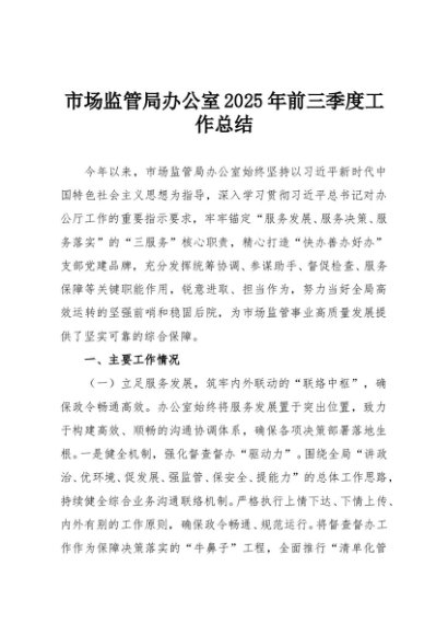 / 【七哥公文】2025年:市场监管局办公室2025年前三季度工作总结+更多免费公文+VX:QiGeGongWen2024
