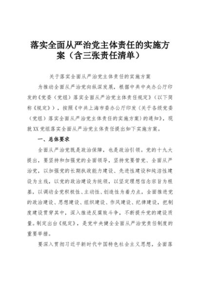 【七哥公文】2025年:落实全面从严治党主体责任的实施方案(含三张责任清单)+更多免费公文+VX:QiGeGongWen2024