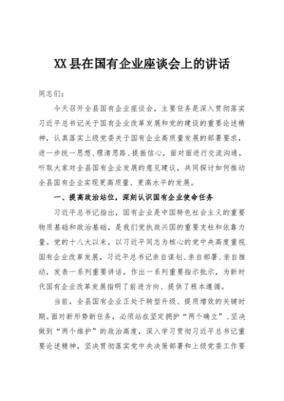 / 【七哥公文】2025年:XX县在国有企业座谈会上的讲话+更多免费公文+VX:QiGeGongWen2024