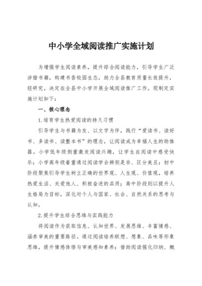 【七哥公文】2025年:中小学全域阅读推广实施计划+更多免费公文+VX:QiGeGongWen2024