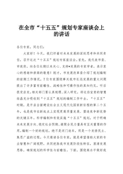 / 【七哥公文】2025年:在全市“十五五”规划专家座谈会上的讲话+更多免费公文+VX:QiGeGongWen2024