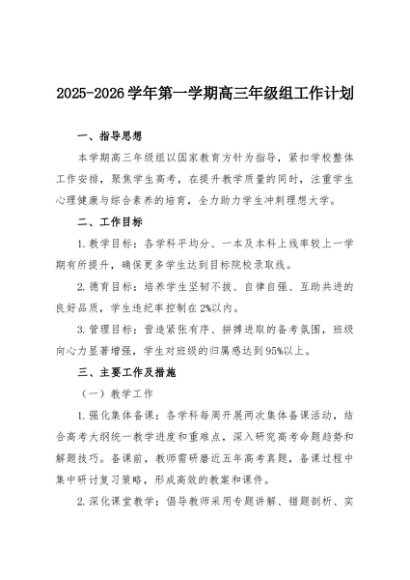 / 【七哥公文】2025年:2025-2026学年第一学期高三年级组工作计划+更多免费公文+VX:QiGeGongWen2024