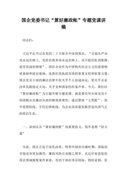 / 【七哥公文】2025年:国企党委书记“算好廉政帐”专题党课讲稿+更多免费公文+VX:QiGeGongWen2024