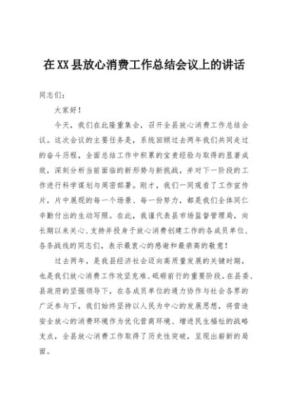 / 【七哥公文】2025年:在XX县放心消费工作总结会议上的讲话+更多免费公文+VX:QiGeGongWen2024