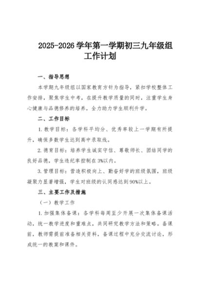 【七哥公文】2025年:2025-2026学年第一学期初三九年级组工作计划+更多免费公文+VX:QiGeGongWen2024