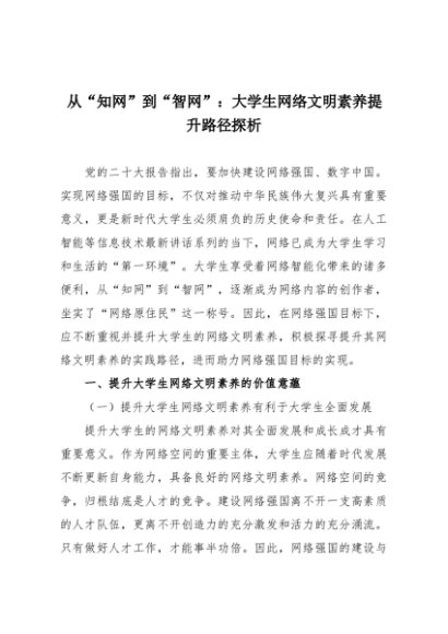 【七哥公文】2025年:从“ 知网” 到“ 智网”:大学生网络文明素养提升路径探析+更多免费公文+VX:QiGeGongWen2024