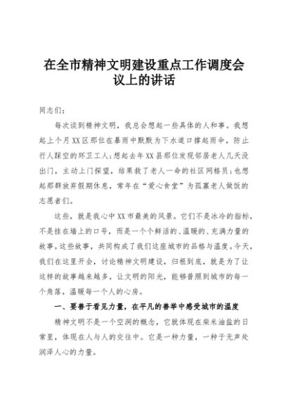 / 【七哥公文】2025年:全市精神文明建设重点工作调度会议上的讲话+更多免费公文+VX:QiGeGongWen2024
