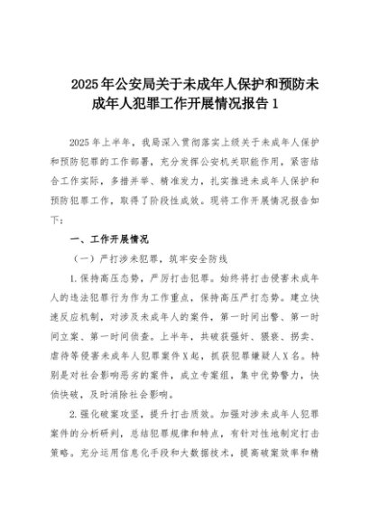 【七哥公文】2025年:2025年公安局关于未成年人保护和预防未成年人犯罪工作开展情况报告1+更多免费公文+VX:QiGeGongWen2024