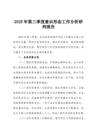 / 【七哥公文】2025年:2025年第三季度意识形态工作分析研判报告+更多免费公文+VX:QiGeGongWen2024