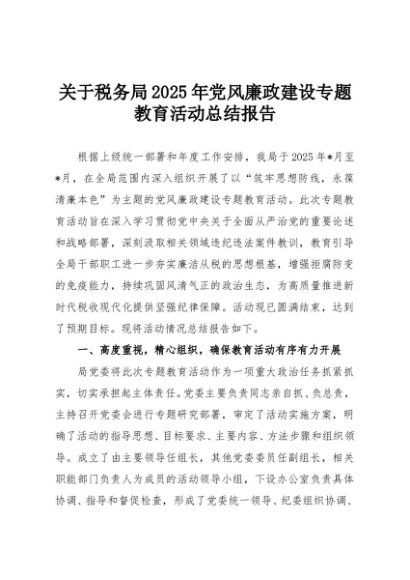 【七哥公文】2025年:关于税务局2025年党风廉政建设专题教育活动总结报告+更多免费公文+VX:QiGeGongWen2024