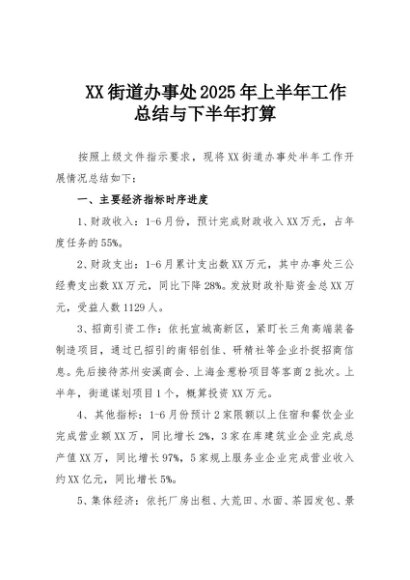 / 【七哥公文】2025年:XX街道办事处2025年上半年工作总结与下半年打算+更多免费公文+VX:QiGeGongWen2024