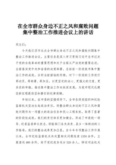 【七哥公文】2025年:在全市群众身边不正之风和腐败问题集中整治工作推进会议上的讲话+更多免费公文+VX:QiGeGongWen2024