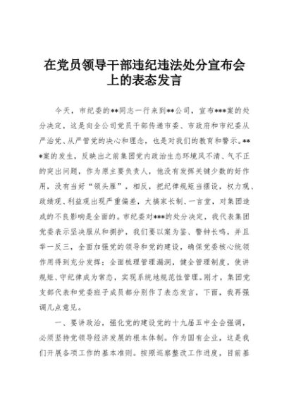 / 【七哥公文】2025年:在党员领导干部违纪违法处分宣布会上的表态发言+更多免费公文+VX:QiGeGongWen2024