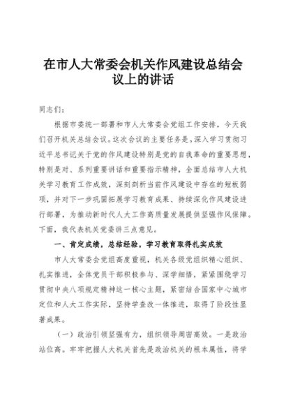 / 【七哥公文】2025年:在市人大常委会机关作风建设总结会议上的讲话+更多免费公文+VX:QiGeGongWen2024