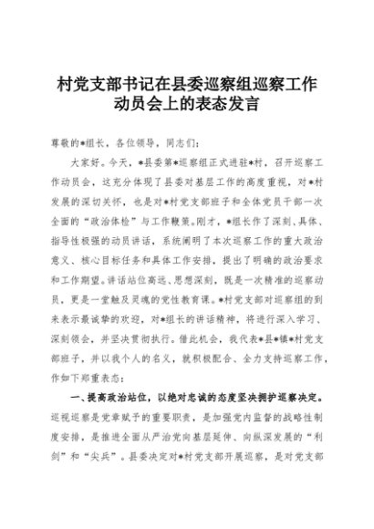 / 【七哥公文】2025年:村党支部书记在县委巡察组巡察工作动员会上的表态发言+更多免费公文+VX:QiGeGongWen2024