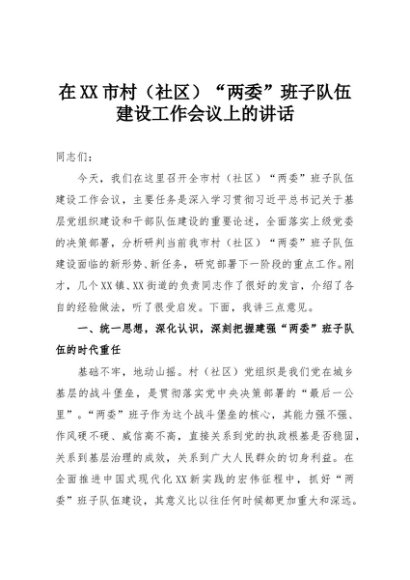 【七哥公文】2025年:在XX市村(社区)“两委”班子队伍建设工作会议上的讲话+更多免费公文+VX:QiGeGongWen2024