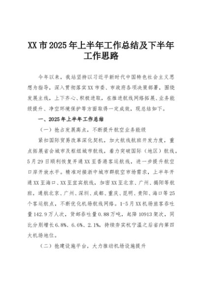 / 【七哥公文】2025年:XX市2025年上半年工作总结及下半年工作思路+更多免费公文+VX:QiGeGongWen2024