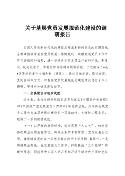 / 【七哥公文】2025年:关于基层党员发展规范化建设的调研报告+更多免费公文+VX:QiGeGongWen2024