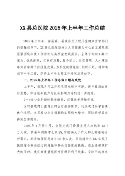 / 【七哥公文】2025年:XX县总医院2025年上半年工作总结+更多免费公文+VX:QiGeGongWen2024