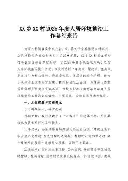 / 【七哥公文】2025年:XX乡XX村2025年度人居环境整治工作总结报告+更多免费公文+VX:QiGeGongWen2024