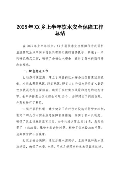 / 【七哥公文】2025年:2025年XX乡上半年饮水安全保障工作总结+更多免费公文+VX:QiGeGongWen2024
