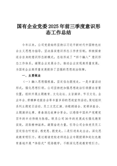 / 【七哥公文】2025年:国有企业党委2025年前三季度意识形态工作总结+更多免费公文+VX:QiGeGongWen2024
