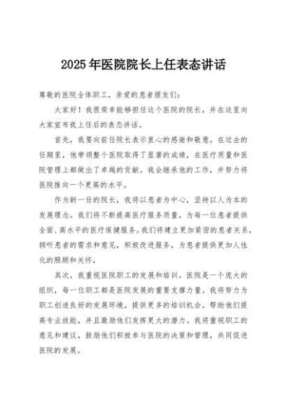 / 【七哥公文】2025年:2025年医院院长上任表态讲话+更多免费公文+VX:QiGeGongWen2024