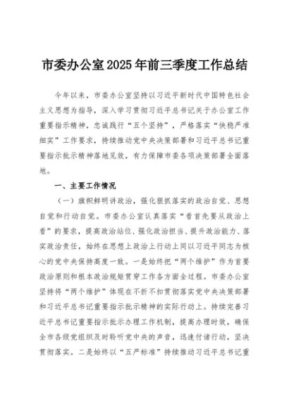 / 【七哥公文】2025年:市委办公室2025年前三季度工作总结+更多免费公文+VX:QiGeGongWen2024