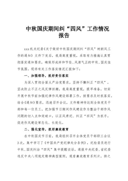 / 【七哥公文】2025年:中秋国庆期间纠“四风”工作情况报告+更多免费公文+VX:QiGeGongWen2024