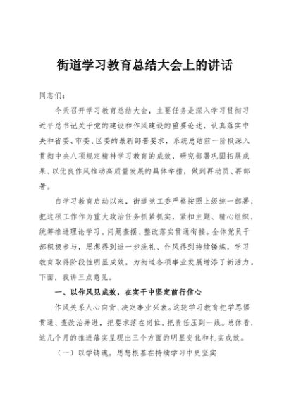 / 【七哥公文】2025年:街道学习教育总结大会上的讲话+更多免费公文+VX:QiGeGongWen2024