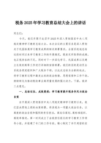 / 【七哥公文】2025年:税务2025年学习教育总结大会上的讲话+更多免费公文+VX:QiGeGongWen2024