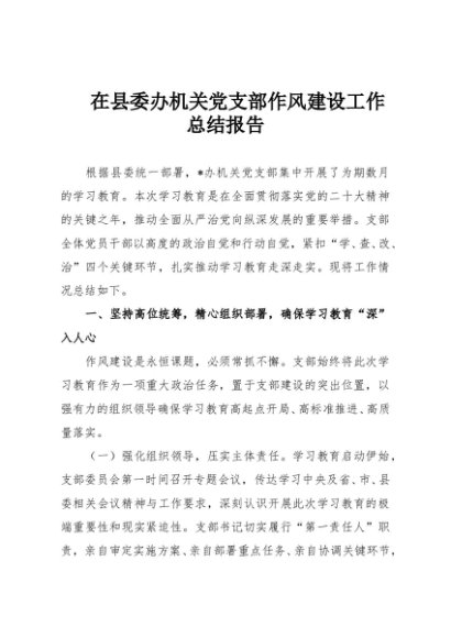 / 【七哥公文】2025年:在县委办机关党支部作风建设工作总结报告+更多免费公文+VX:QiGeGongWen2024