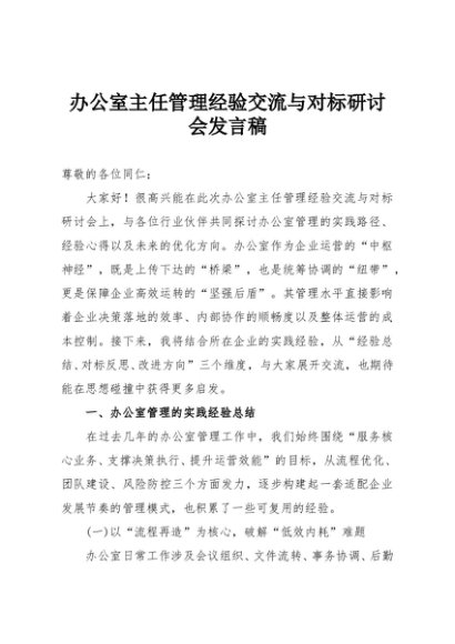 / 【七哥公文】2025年:办公室主任管理经验交流与对标研讨会发言稿+更多免费公文+VX:QiGeGongWen2024