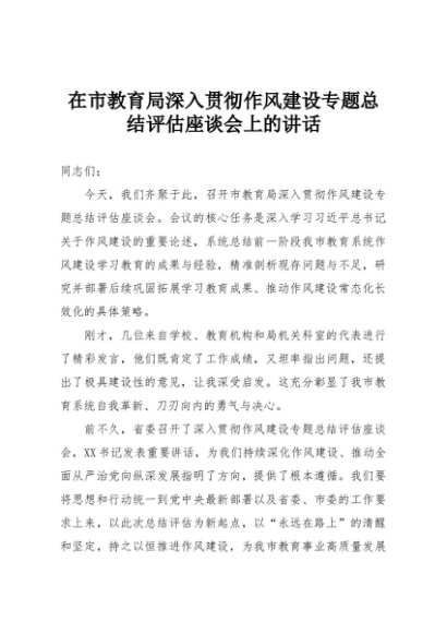 / 【七哥公文】2025年:在市教育局深入贯彻作风建设专题总结评估座谈会上的讲话+更多免费公文+VX:QiGeGongWen2024