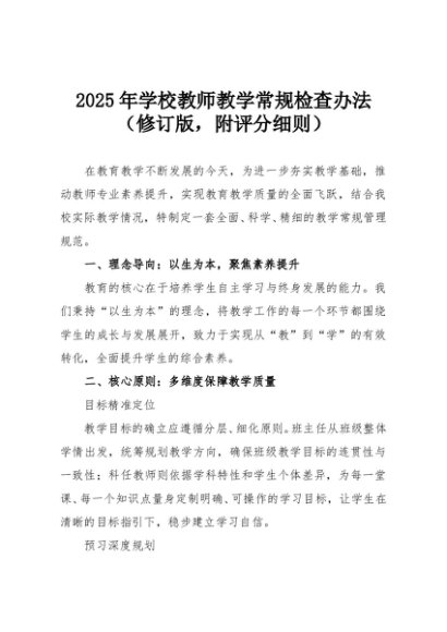 【七哥公文】2025年:2025年学校教师教学常规检查办法(修订版,附评分细则)+更多免费公文+VX:QiGeGongWen2024