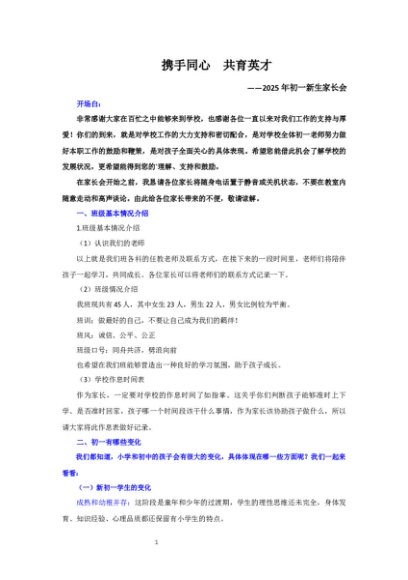 【七哥公文】2025年:【初一】【秋季上】开学新生家长会《启幕新篇章携手创辉煌》+更多免费公文+VX:QiGeGongWen2024