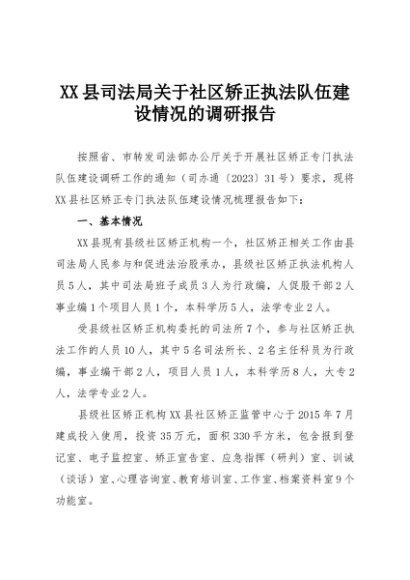 / 【七哥公文】2025年:XX县司法局关于社区矫正执法队伍建设情况的调研报告+更多免费公文+VX:QiGeGongWen2024